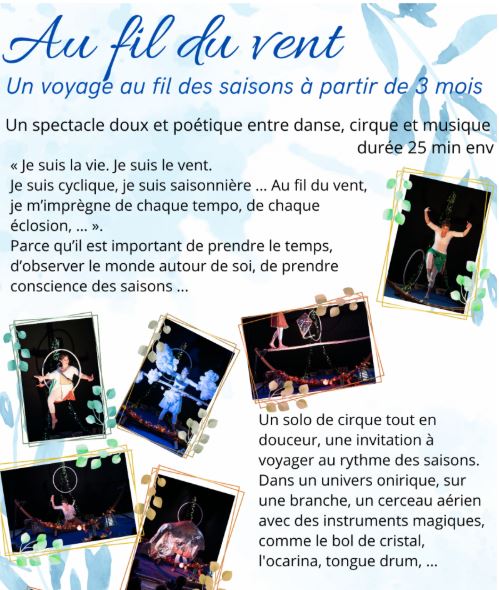 A 11h – Zoé Micha présentera son spectacle ‘Au fil du vent‘ pour les petits & les grands.